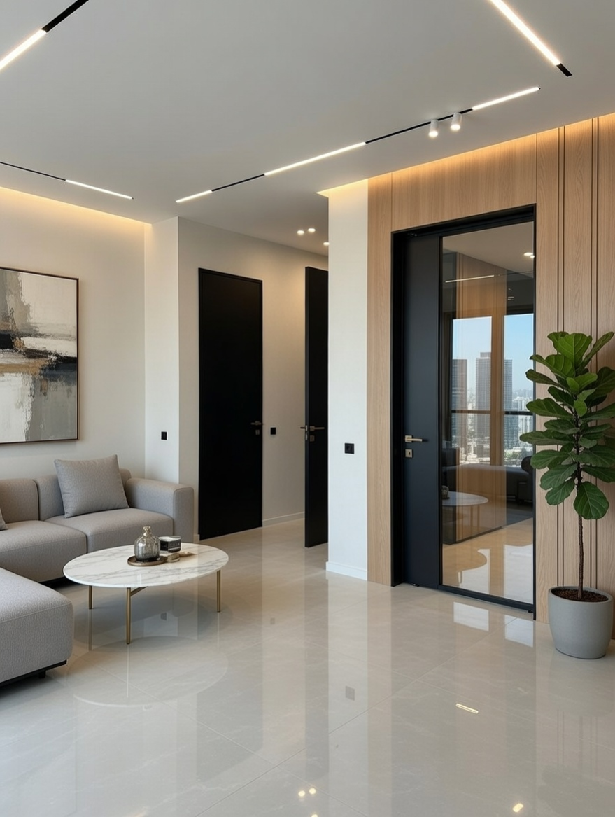 Премиальные двери серии P50 с алюминиевым каркасом, которые сочетают в себе высокое качество, эстетику и функциональность. Мы предлагаем уникальные решения для интерьеров, используя отделку из стекла, керамогранита и АКП — алюминиевых композитных панелей в текстурах SOIF.